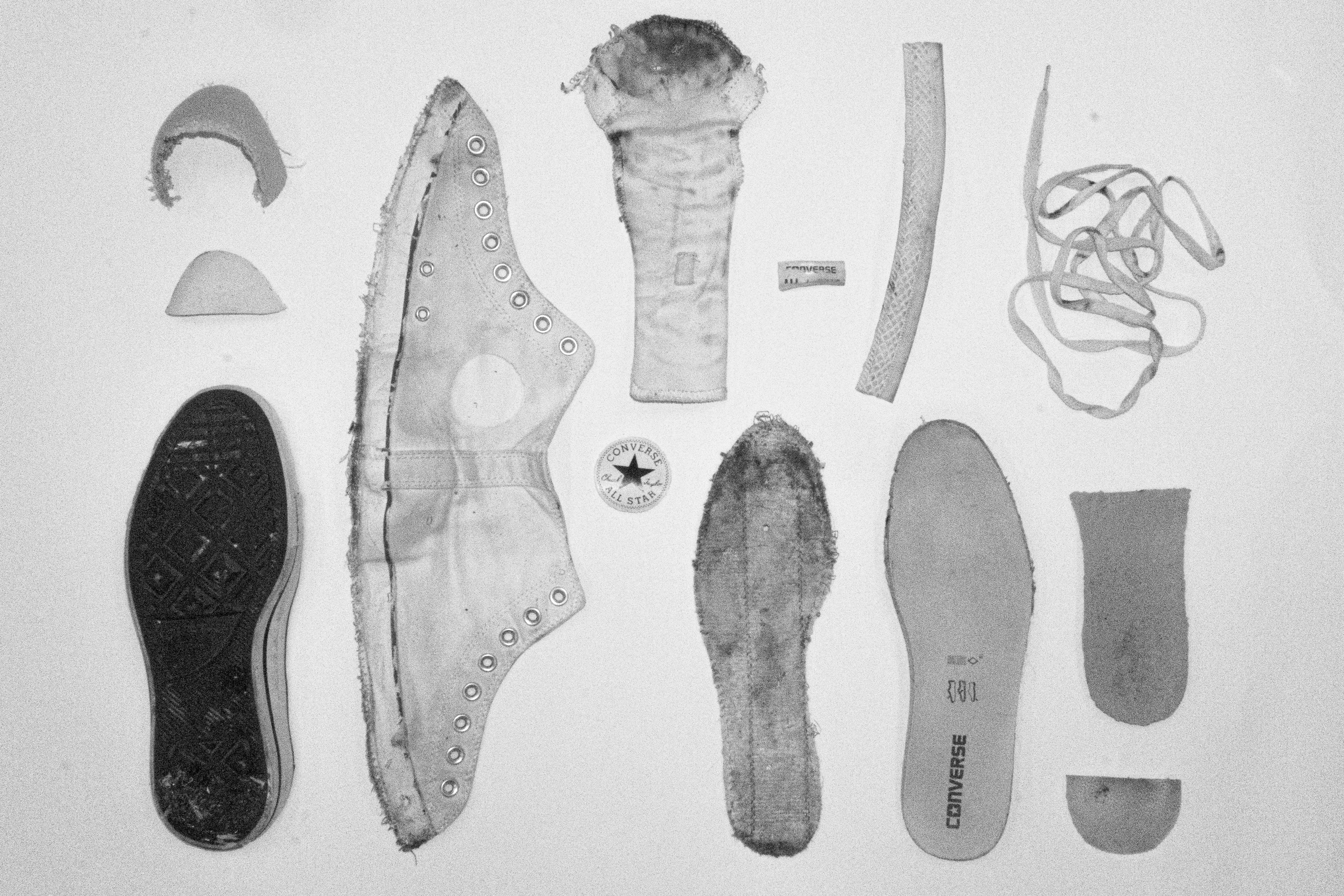 한때 아기네스 딘이라는 영국 모델을 롤 모델 삼아 머리를 짧게 자르고 컨버스 하이와 닥터마틴 신발을 신는 미래를 상상했다. 나는 한 켤레의 컨버스를 5년 동안 신었고, 닥터마틴은 가격이 올라 여전히 사지 못하고 있다. 스무 살 초여름 무렵 새하얗던 신발은 2022년이 되어 고무 밑창에 구멍이 났고 햇빛에 바래 누렇게 변색되었다. 여기저기 기름때가 끼어 까맣게 물들기도 했다. 누군가 이 신발에 대해 묻는다면 나는 나의 20대가 담긴 신발이라 대답할 것이다. 그럼에도 신발을 회 뜬 생선처럼 남김없이 해체한 까닭을 묻는다면 당신이 더 잘 알지 않느냐고 되물을 것이다. 좋은 기억만 발라내고 찌꺼기는 먼 바다에 던질 때가 되었다.