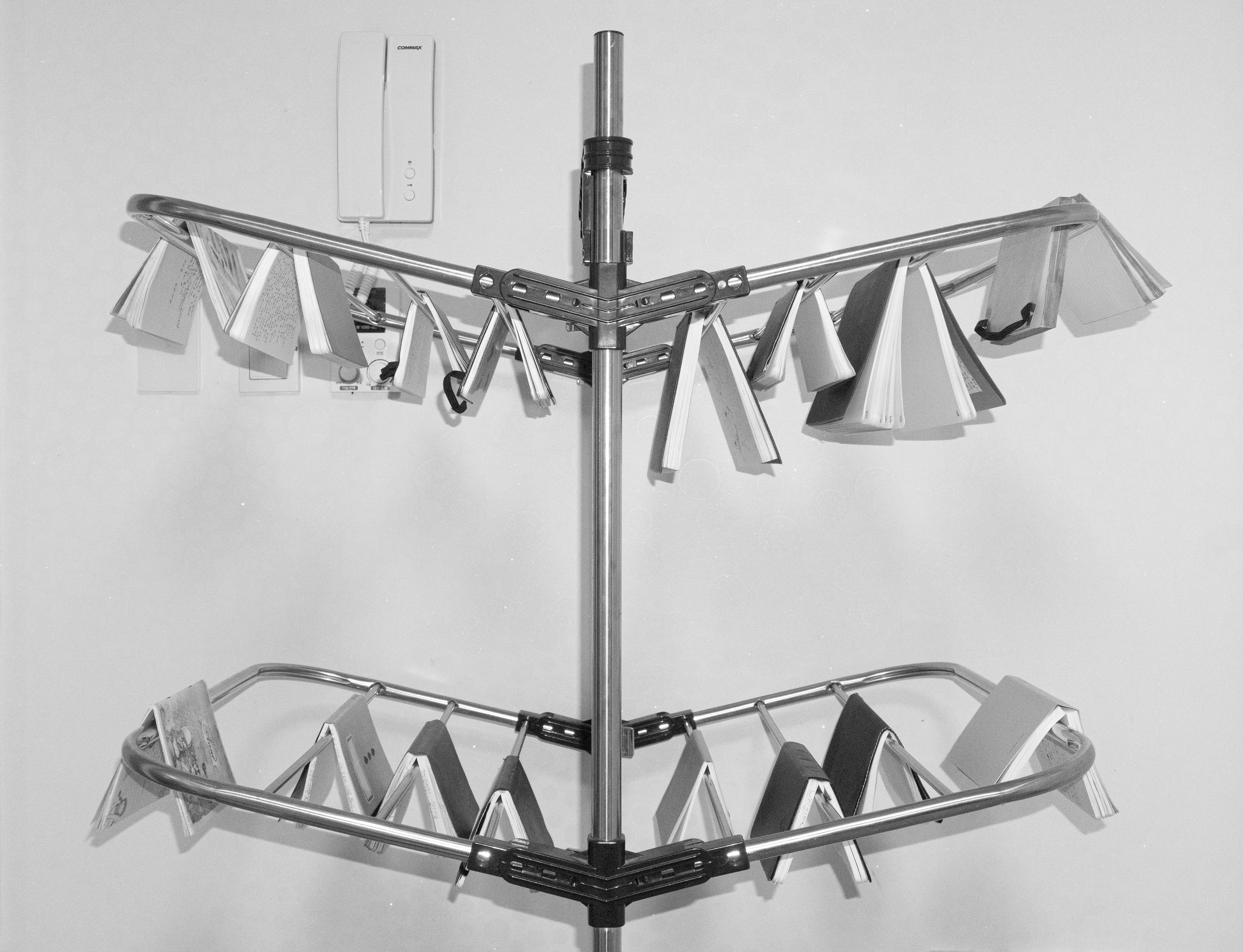 이 노트들은 젖어 있다. 축축하다 못해 툭 건드리면 물이 쏟아질 것 같다. 무언가에 너무나도 깊이 스며 온전히 짜낼 수 없는 단계이다. 이럴 때는 노트를 하나하나 빨래 건조대에 걸어 말려야 한다. 물을 적신 옷감은 안간힘을 써서 비틀어도 실 한 올 한 올에 물이 스며들어 여전히 축축하지 않은가. 만약 햇빛이 들지 않으면 어둠 속에서, 바람이 불지 않으면 적막 속에서 긴 시간을 버텨내는 한이 있더라도 말려야 한다. 언젠가 바싹 마른 천 위를 걸을 수 있기를 바라며 메마르기를 기다려야 한다. 나는 이렇게 글을 쓴다.